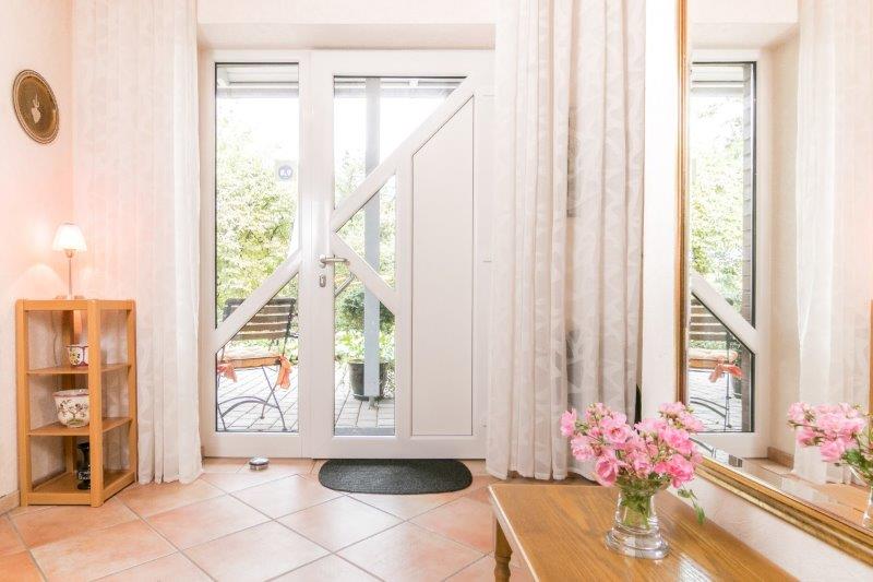Von dem Wohnbereich aus gelangen Sie zu der überdachten Terrasse mit angrenzendem Garten. Bei schönem Wetter können Sie diesen mit all seinen Vorzügen genießen, vielleicht mit einem Glas Wein oder einem kühlen Bier zum Feierabend?